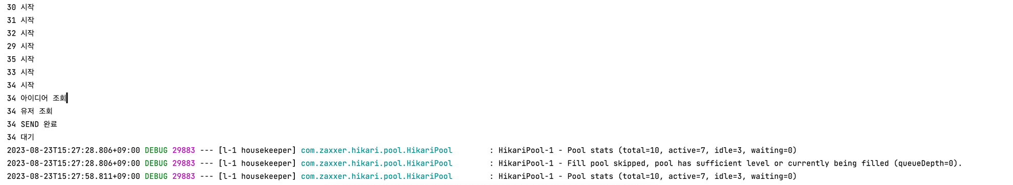➡ 요청이 한꺼번에 들어오면 HikariCP에 있는 모든 Connection이 연결
