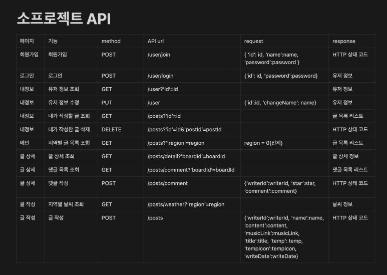 설명. 날씨에 따라 드는 느낌을 작성하고 노래를 추천하는 사이트