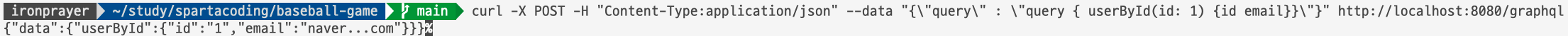 Java Spring에 Graphql을 적용한 이후 Curl에 명령어를 통해 결과를 확인했다. 정상적으로 요청한 데이터가 내려오는 것을 확인했다.